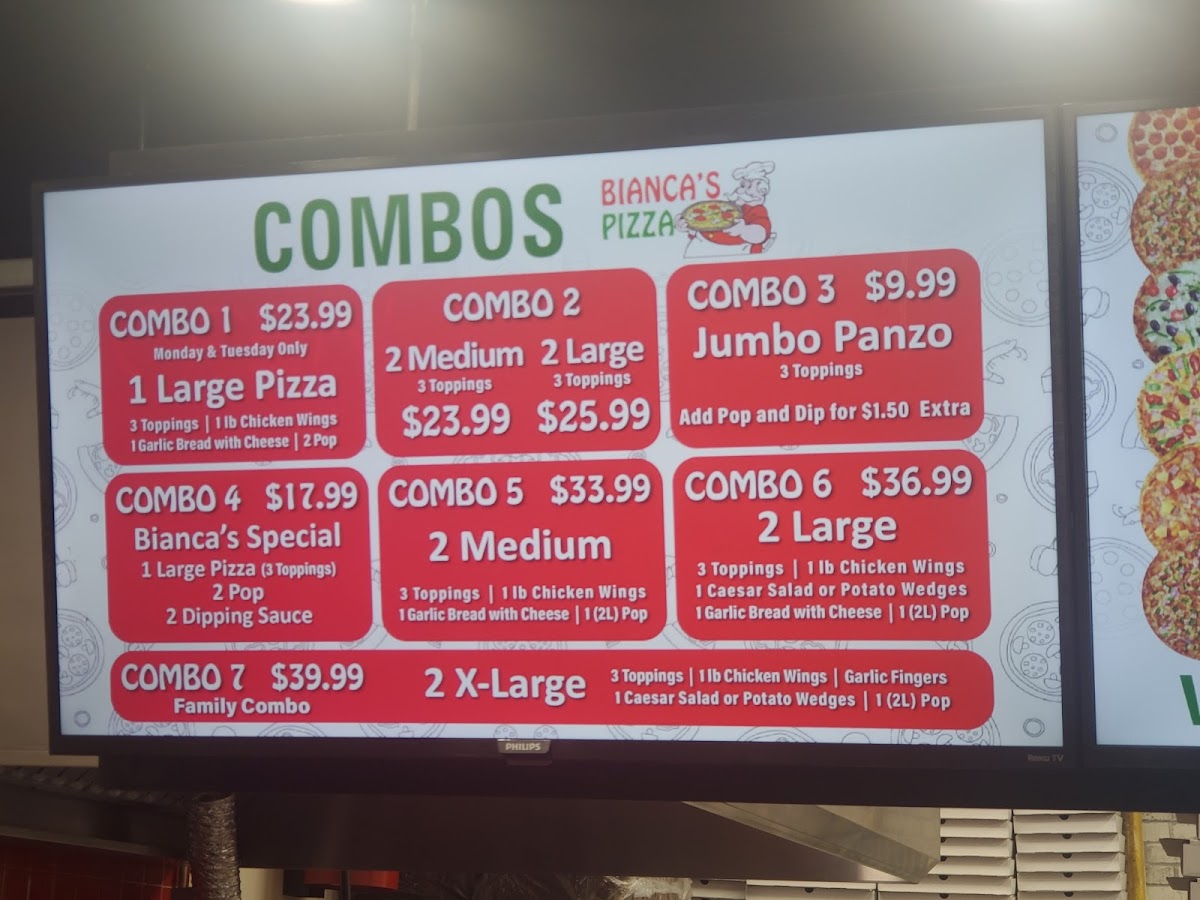 Welcome to Bianca's Pizza, a beloved spot nestled at 363 King St N, Waterloo. Bianca's offers an enticing menu that caters to all pizza lovers. The lineup includes an array of pizzas, from their Medium Vegetarian—a delightful mix of mushrooms, green peppers, and tomatoes—to the indulgent Medium Bacon Double Cheeseburger Pizza featuring ground beef and bacon crumble. Each size, from Small to Extra Large, is reasonably priced, ensuring you get value with every bite.